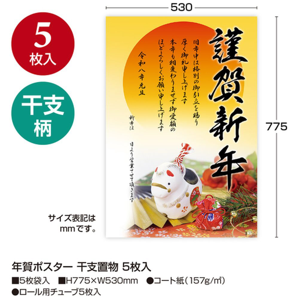ササガワ 年賀ポスター 干支置物 5枚入(2026年 午)
