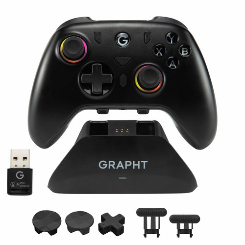 スティック・十字キーの交換や背面ボタンの割り当てによる、クイックカスタム可能なゲームパッドと充電ドックのバンドルセット