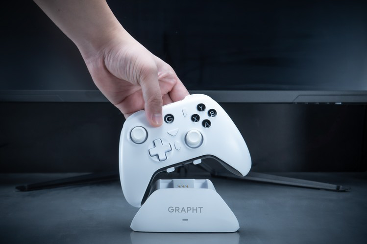 スティック・十字キーの交換や背面ボタンの割り当てによる、クイックカスタム可能なゲームパッドと充電ドックのバンドルセット