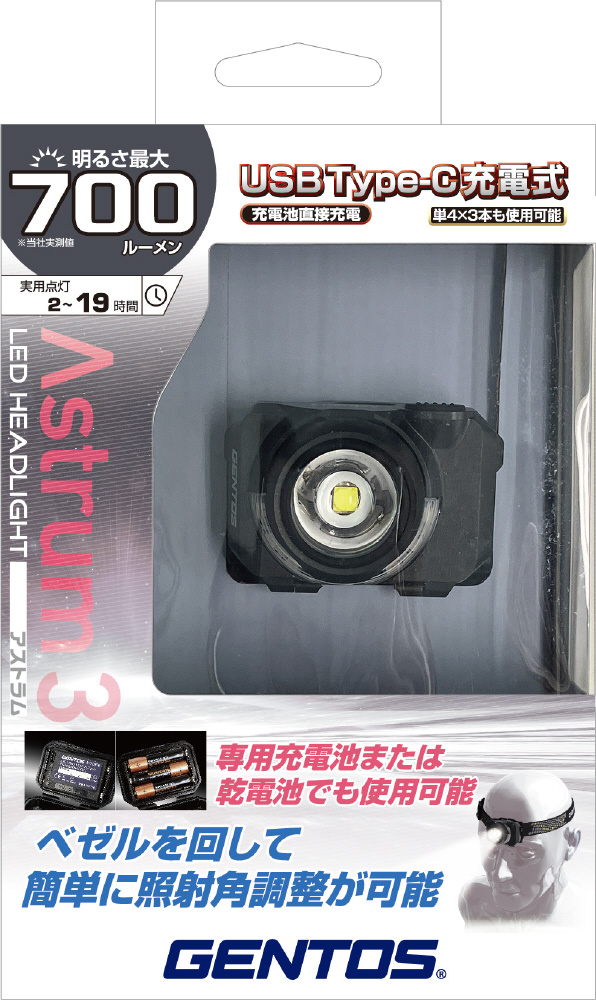 | 商品名 | 充電・乾電池兼用ヘッドライト Astrum 3 AST-03H |