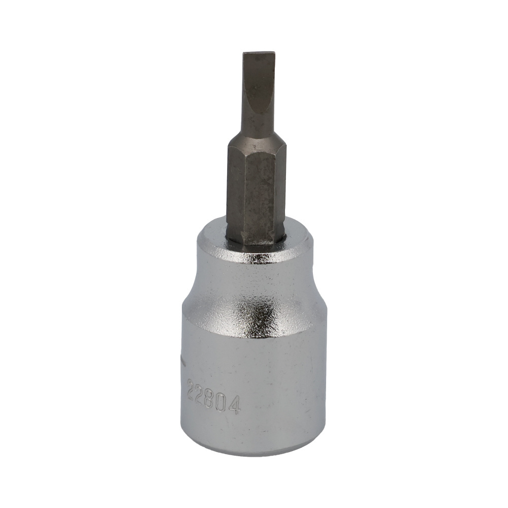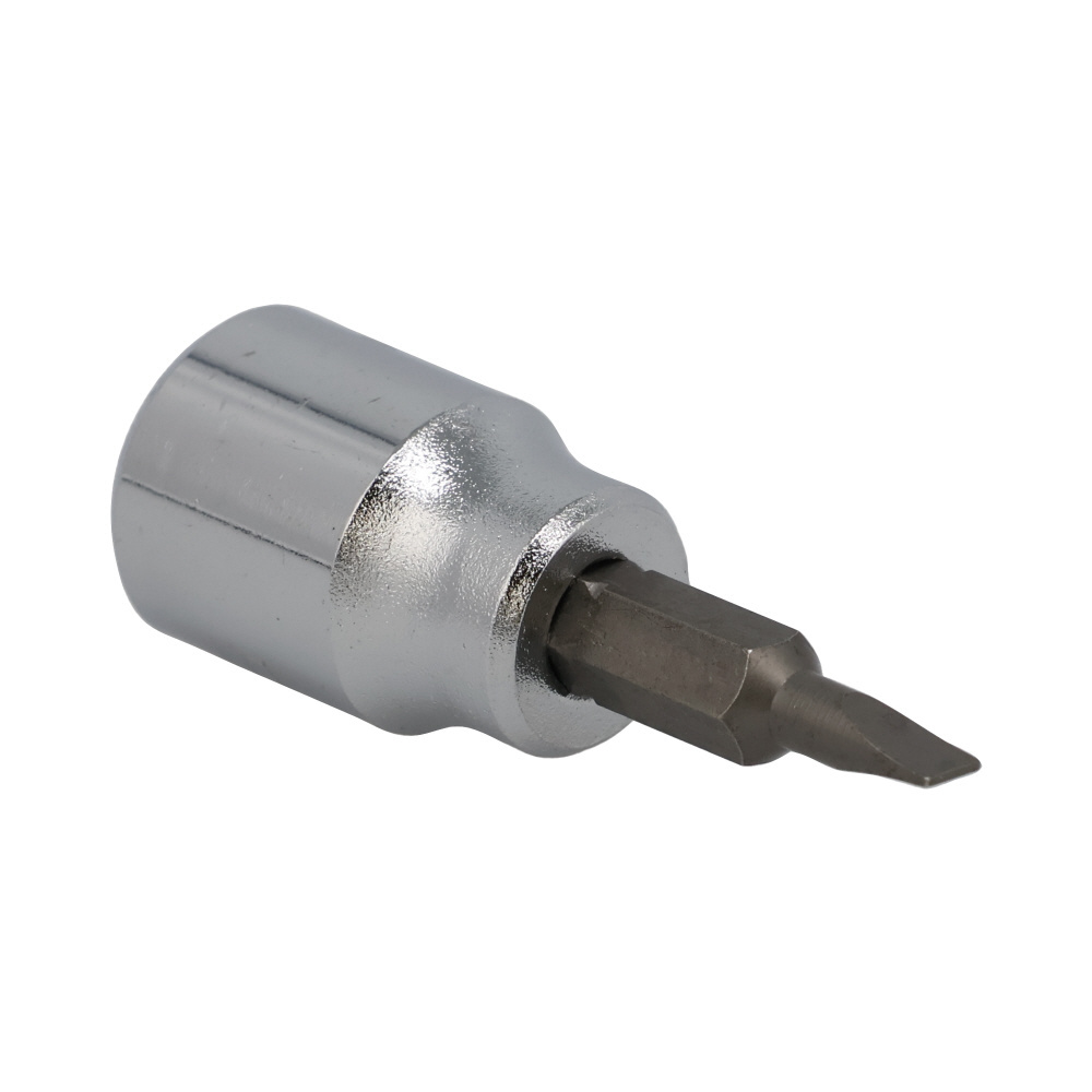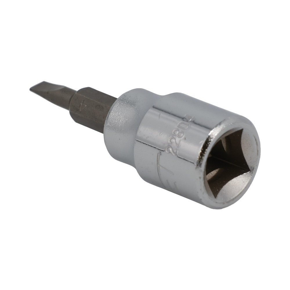 【仕様】●差込角(SQ):3/8●サイズ(mm):4.0●全長(L1;mm):49●軸長(L2;mm):23●外径(D;mm):18【特長】●3/8SQラチェットハンドル等と併用するマイナスビットソケット。