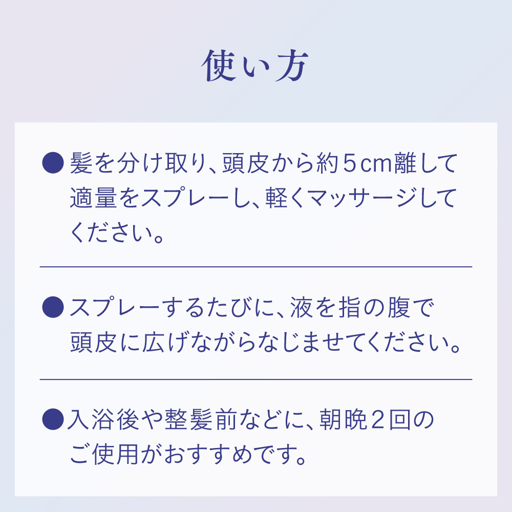 抜け毛が気になりはじめた方に。地肌の血行を促進し、抜け毛を防ぐ。根元から美しい髪を育む。【医薬部外品