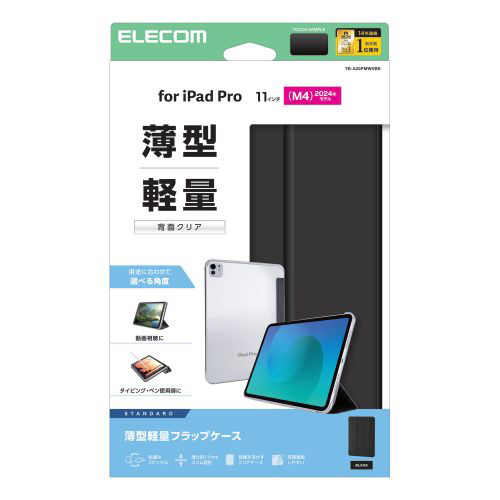 商品名 11インチiPad Pro(M4)用 フラップケース 薄型軽量 背面クリア 2アングル ブラック TB-A25PMWVBK