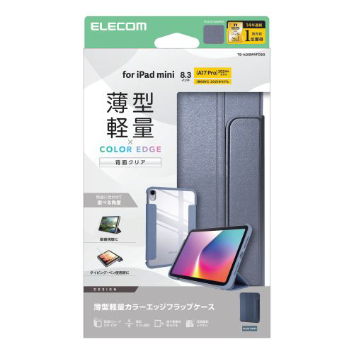 iPad mini(A17 Pro / 第6世代)用 フラップケース 薄型軽量 カラーエッジ 背面クリア ブルーグレー TB-A25SWVFCBG 【864】