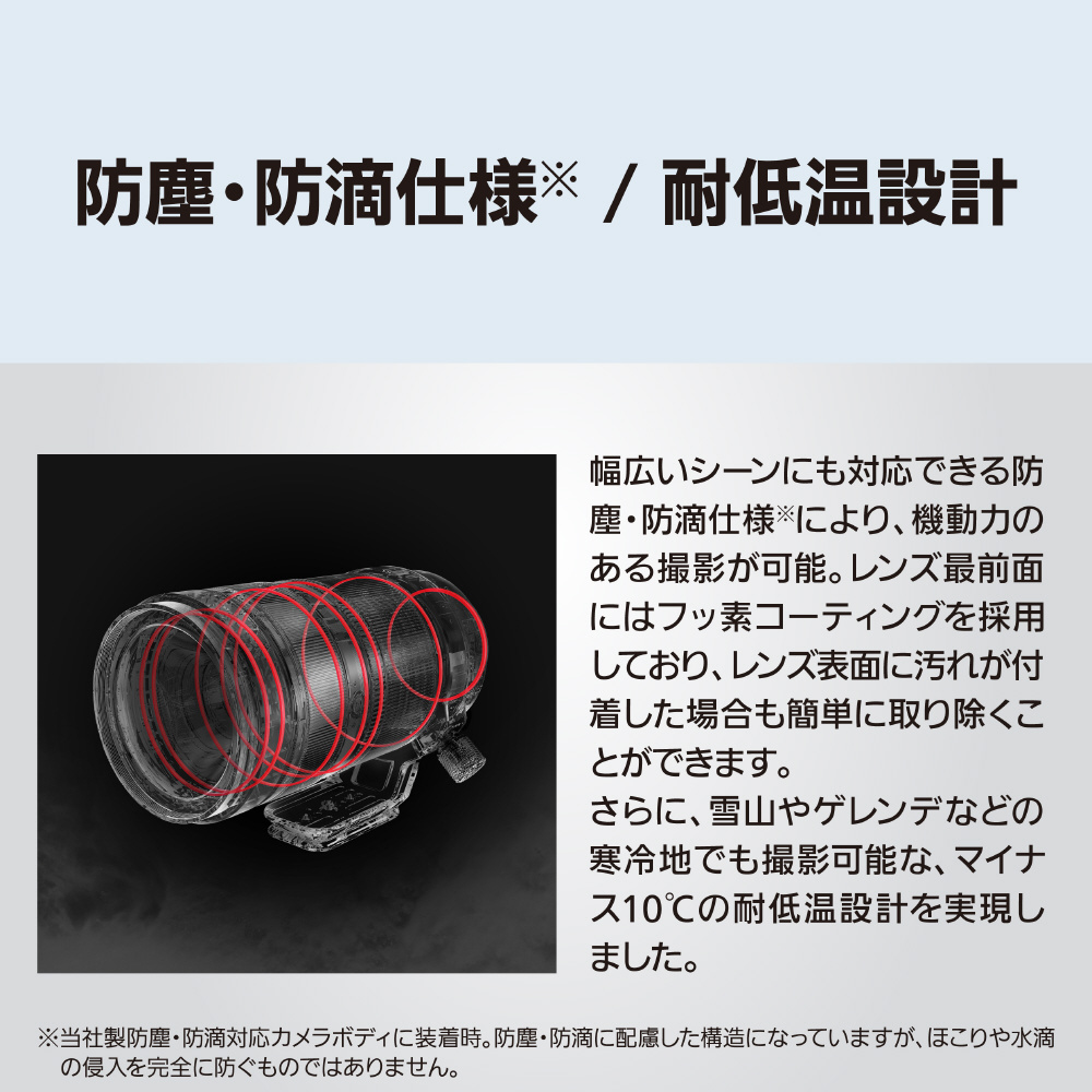 ・超望遠ズームレンズながら全長約196.1mmの小型化を実現