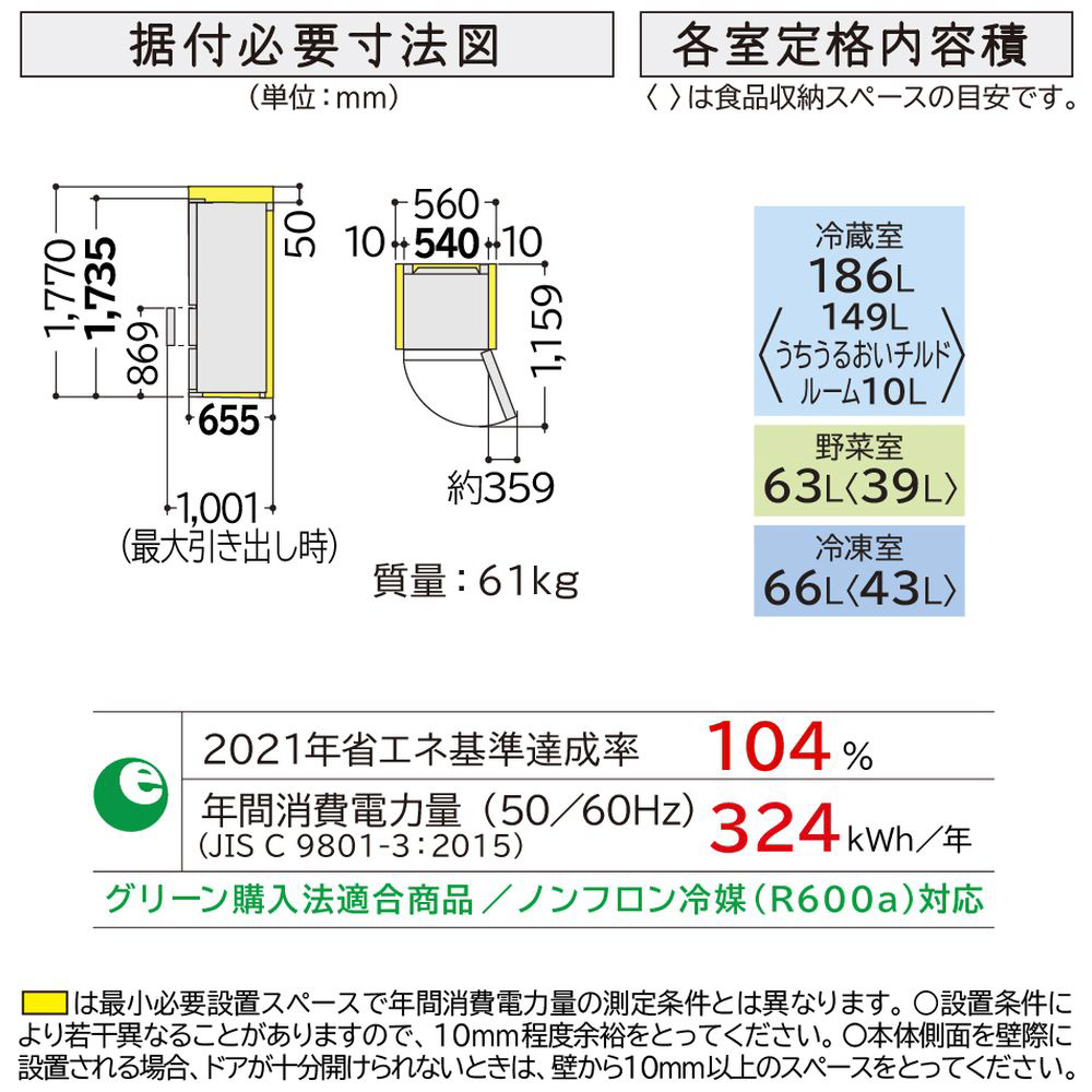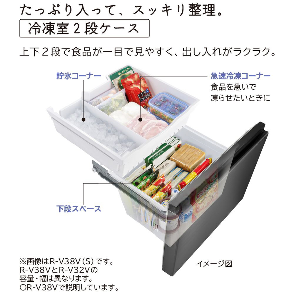 冷蔵庫 Vタイプ グラファイトシルバー R-V32V-S [幅54cm /315L /3ドア /右開きタイプ /2024年]【生産完了品】【基本設置料金セット】