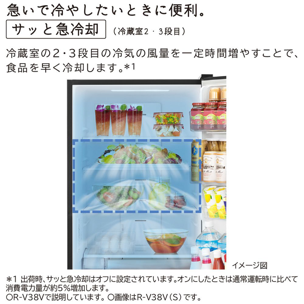 冷蔵庫 Vタイプ ライトゴールド R-V38V-N [幅60cm /375L /3ドア /右開きタイプ /2024年]【生産完了品】【基本設置料金セット】