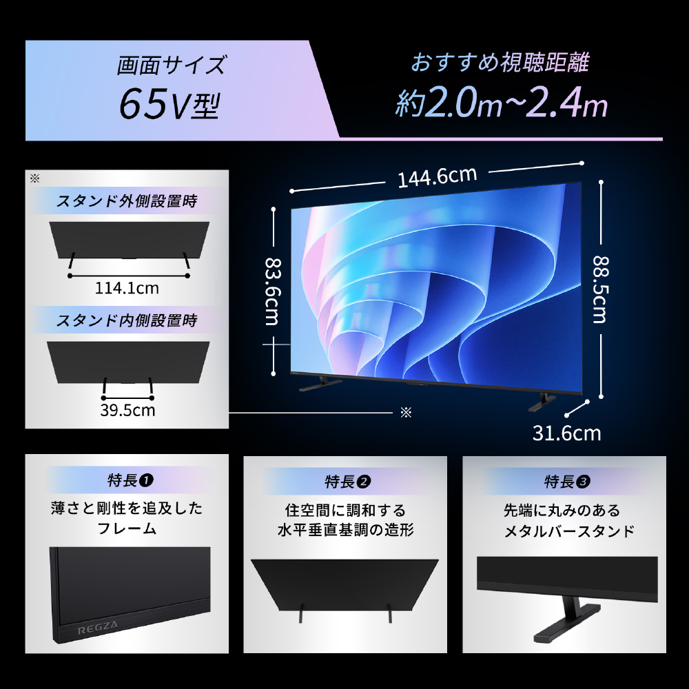 地デジAIビューティがノイズを抑え、倍速パネルで動きも滑らか。大画面65型の臨場感は、映画館のよう。