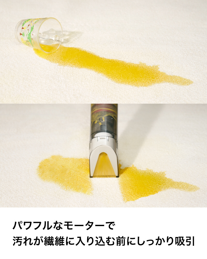 ■パワフルなモーターで、分解した汚れや水分が繊維に入り込む前にしっかり吸引