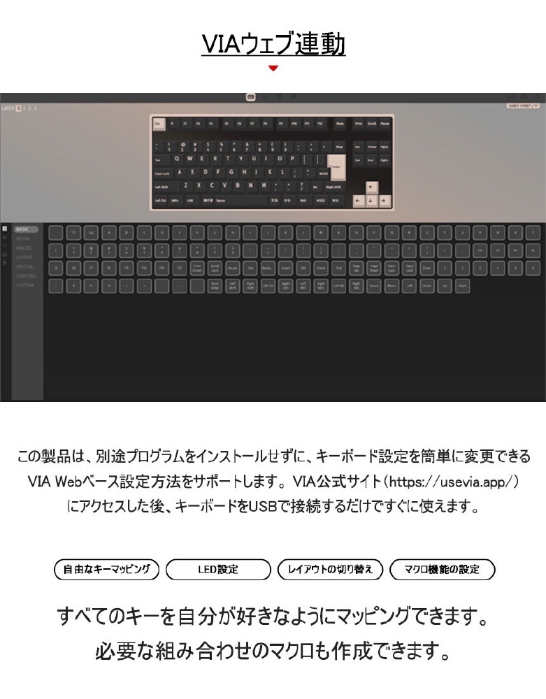 別途プログラムをダウンロードする必要がなく、WEB接続後すぐにキーマップを設定することができます。
