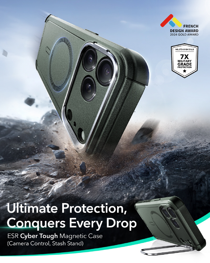 iPhone 17 Pro (6.3インチ)MagSafe対応、隠れスタンド付き、3層構造衝撃吸収ハイブリッドケース オリーブグリーン 1A88100401-Olive Green