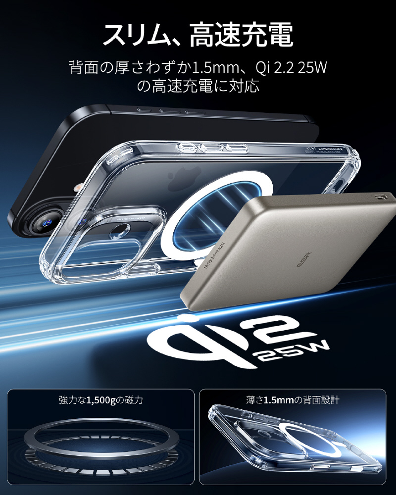 業界トップクラスの強力磁力(1500gの保持力)を内蔵した iPhoneケースです!MagSafeワイヤレス充電器