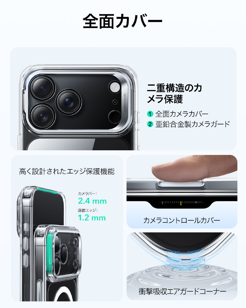 「また落とした!? 修理代、いくらかかるの…」そんな心配はもう不要です。このiPhoneケースは四隅に衝撃吸収エアバッグを採用し、厳しいSGS軍規格認証(米軍規格MIL-STD-810H)も取得し、過酷な状況にも耐える強度で、高価なスマホを完璧にガードできます。思いがけない衝撃から守り、あなたの財布も守る心強い相棒です