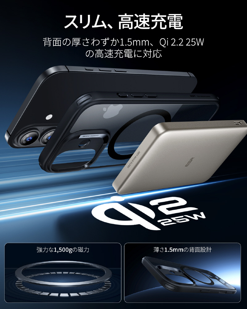 | 仕様3 | スリムな背面でQi2.2 25Wの高速充電にも対応 |