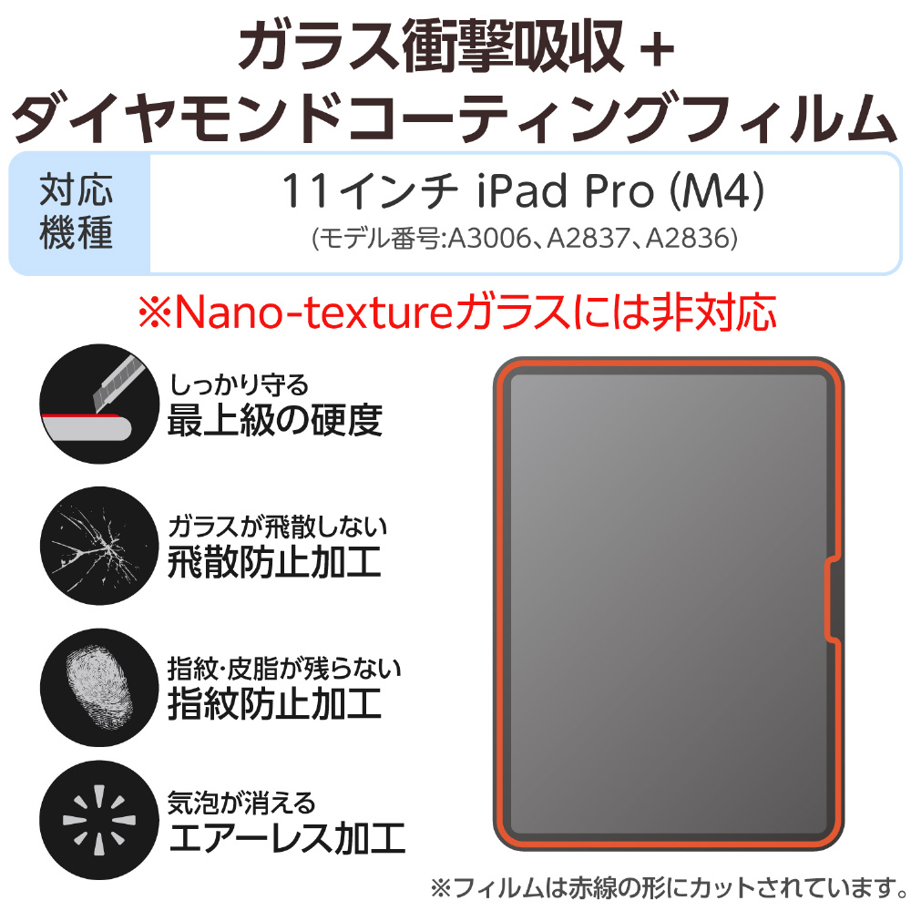 | 商品名 | 11インチiPad Pro(M5/M4)用 ガラスフィルム ダイヤモンドコート ガイドフレーム付 TB-A25PMFLGDC |