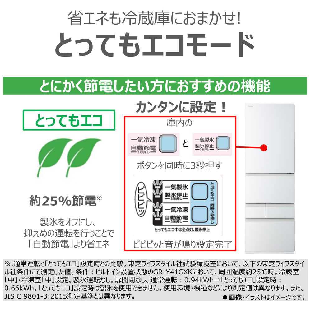 冷蔵庫 VEGETA(ベジータ)GXKシリーズ グランホワイト GR-Y41GXKL-EW [幅60cm /411L /5ドア /左開きタイプ /2025年]【基本設置料金セット】