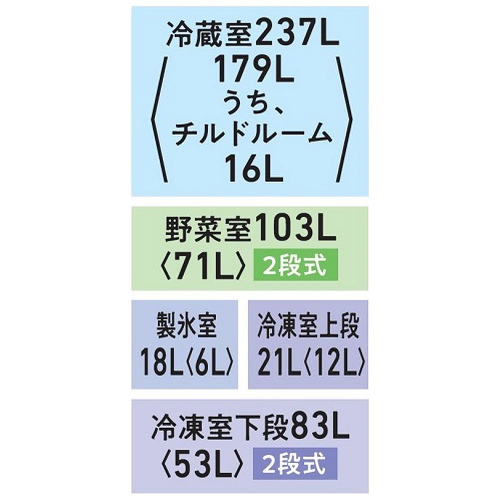大容量&基本機能を搭載したスタンダードモデル。高まる省エネ意識へ対応「とってもにエコ」搭載。まんなかにレイアウトされた野菜室だから、重い野菜などの出し入れもスムーズにできます。