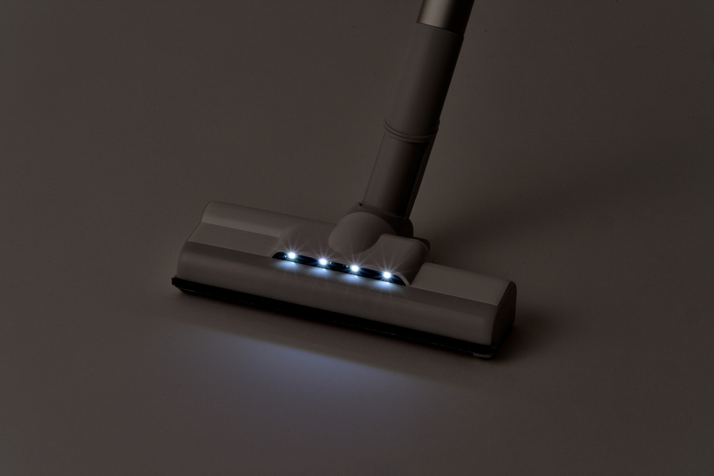 広可動域ネック&LEDライト搭載で、棚やソファー下もしっかりお掃除