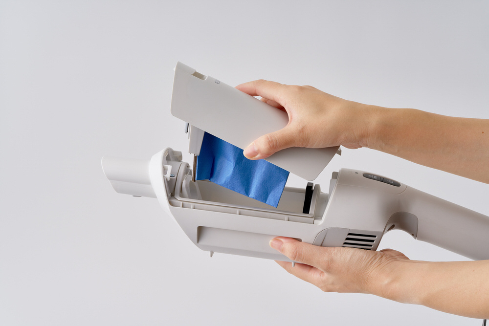 集めたごみが外から見えず、さらに捨てるのもかんたんな紙パック式。