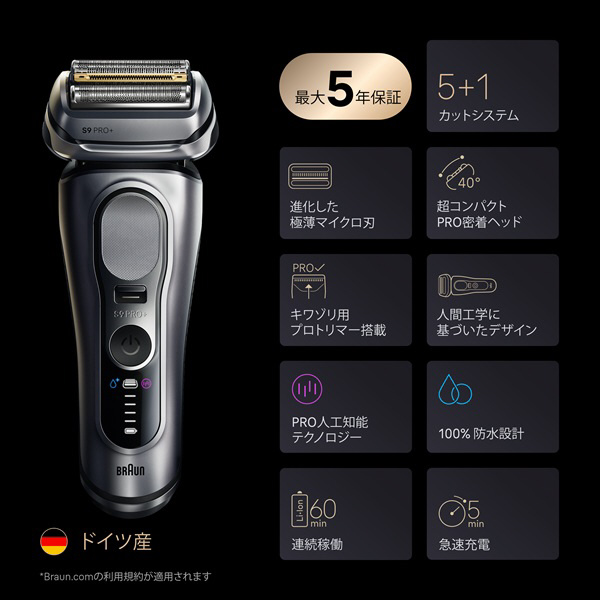 ブラウン史上最高の電気シェーバーシリーズ9 PRO+は究極の深剃り、精密なシェービングを実現。