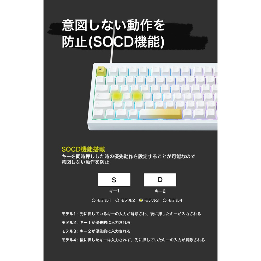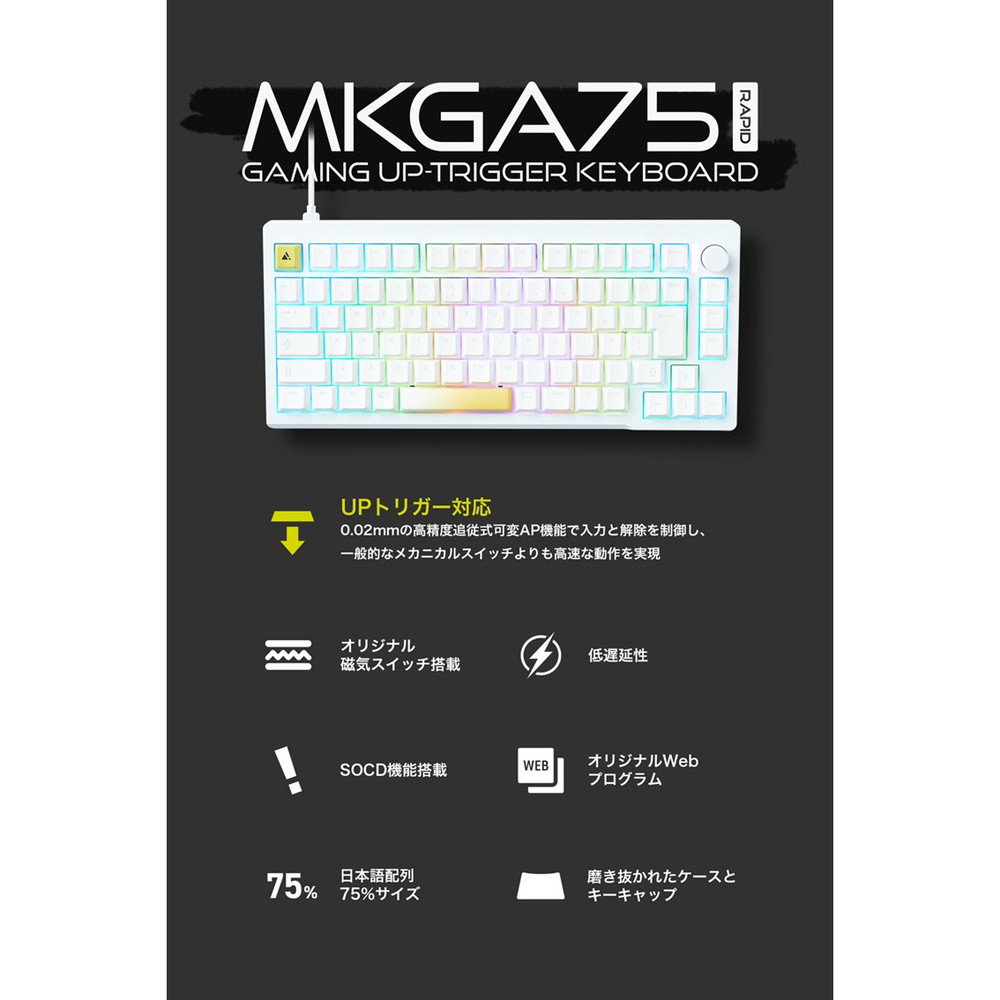 ゲーミングキーボード(ラピッドトリガー対応) ホワイト UP-MKGA75MTL-RT-J/W [有線 /USB]