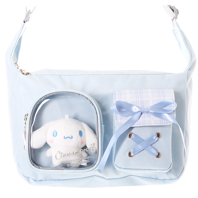 サンリオキャラクターズ ポリチェック2ポケットぬい付ラウンドショルダー サンリオ シナモロール 253336-3
