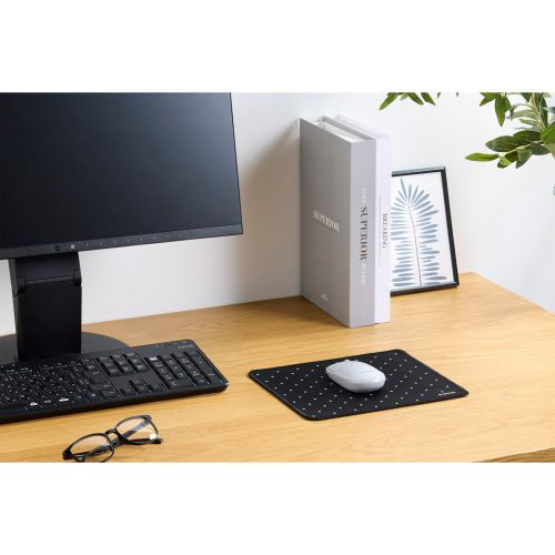 ほつれにくく高耐久なファブリックマウスパッドです。飲み物をこぼしてもサッと拭くだけで簡単にお手入れ可能。なめらかな表面素材は滑りすぎず、マウス操作をスムーズにサポートし、デスク天板を傷から守ります。