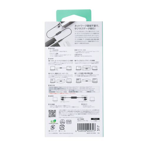 USB-C+USB-A ⇔ USB-C+USB-Aリンクケーブル [転送 /1.5m /USB3.0] パソコン間(Mac/Windows11対応) ブラック UC-TV8BK
