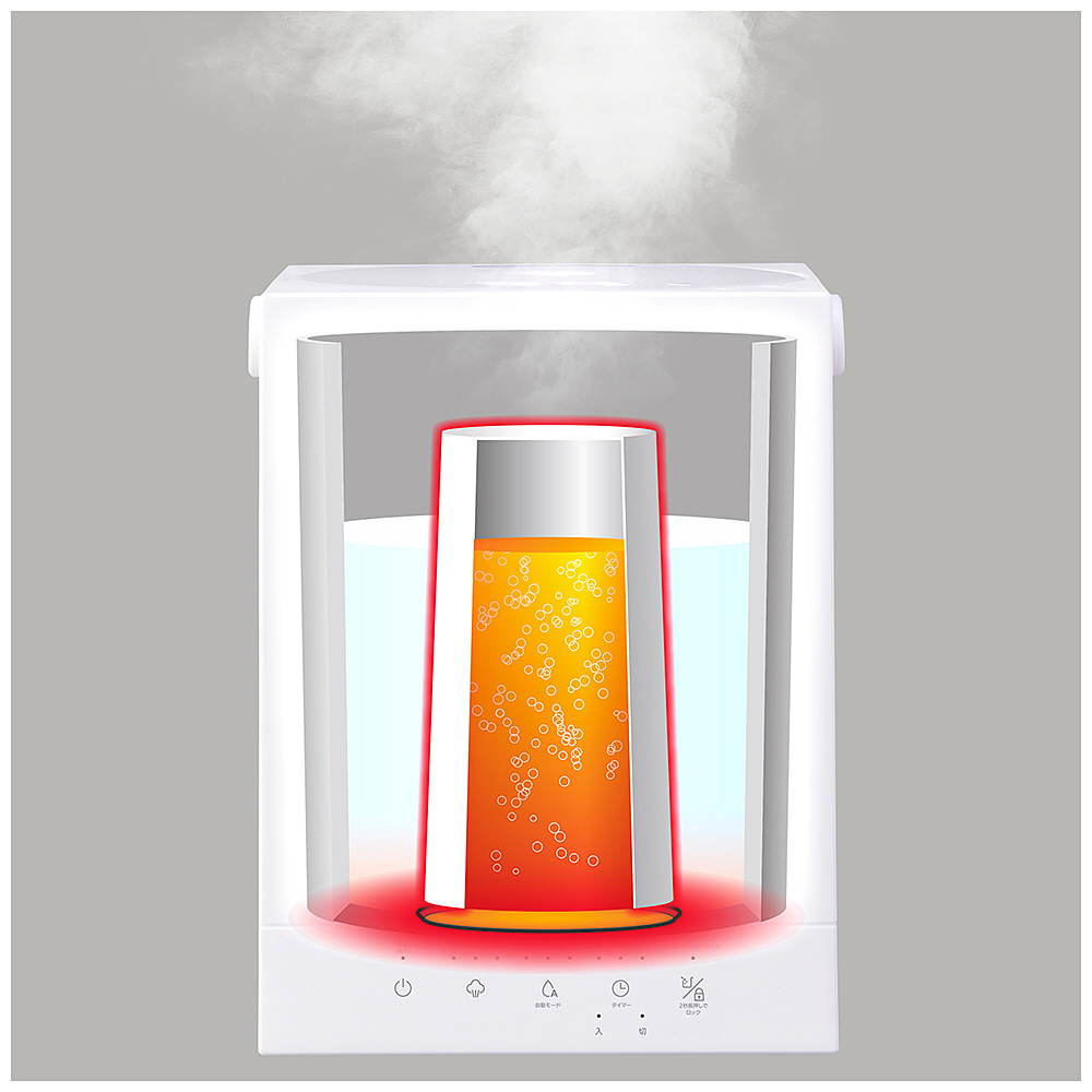 速く沸く、潤い広がる。2層タンクの”スポット加熱構造”で内層の水を集中して加熱。約15分で沸騰します。パワフル加湿