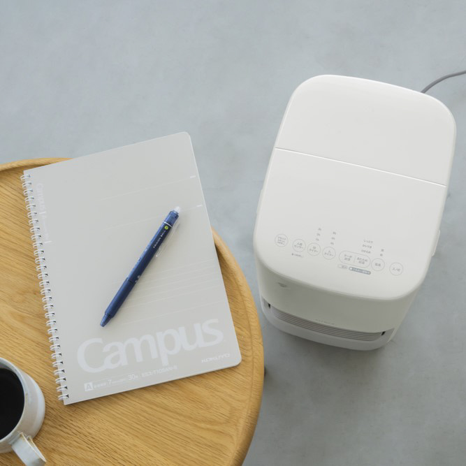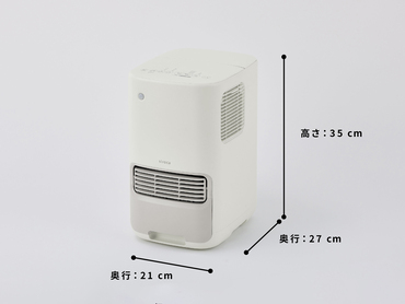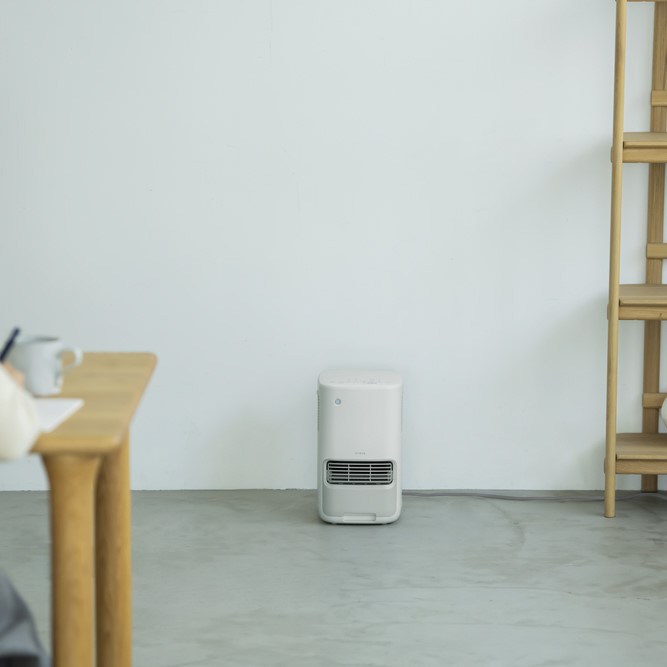 ヒーターと加湿器がこれ一台。A4に収まるコンパクトさで、あたためながら湿度コントロール。