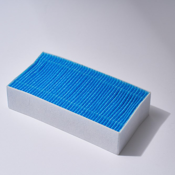 また、気化式ですので、お部屋の湿度が上昇するとファンが当てる風の湿度も高くなり、フィルターで蒸発する水分量は自然に抑えられます。