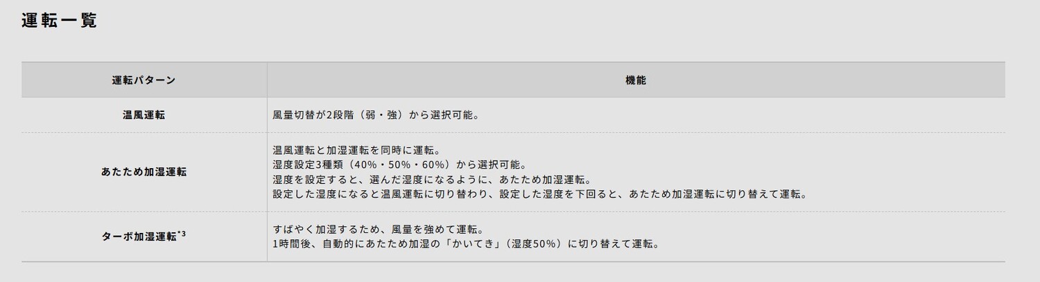 *3 ターボ加湿モード使用時は、暖房効果はありません。