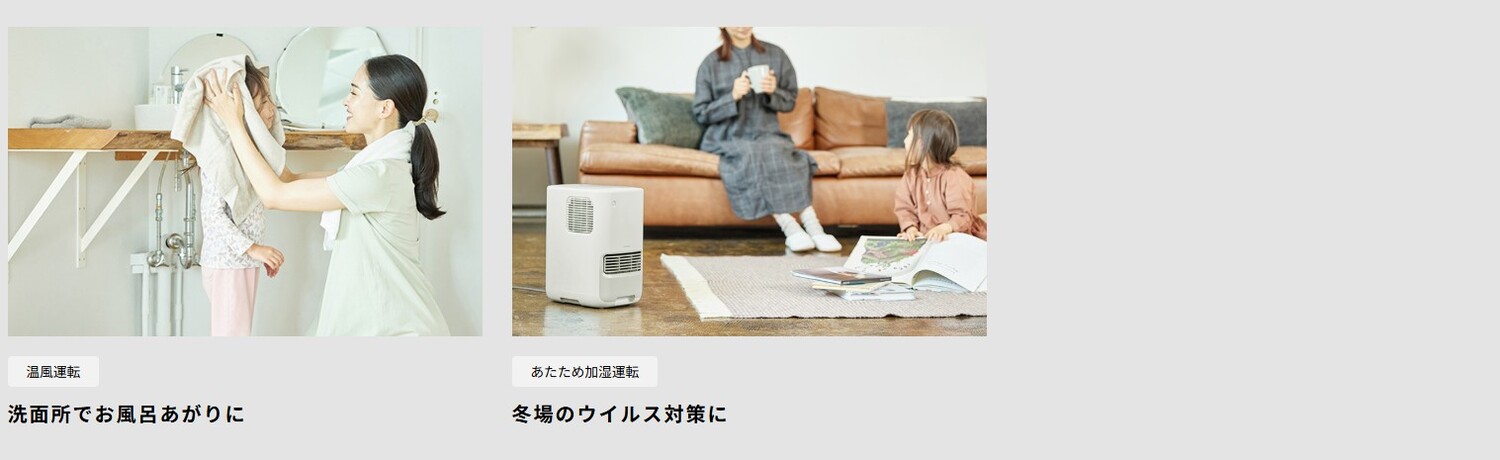 冬場の帰宅後や、朝起きてすぐ足元をあたためたいときに温風運転、ウイルス対策にはあたため加湿運転など、