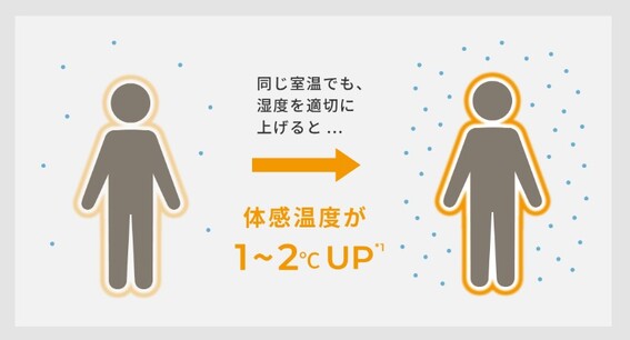室温は同じでも、最適な湿度に設定することで体感温度が1〜2℃アップします。*1