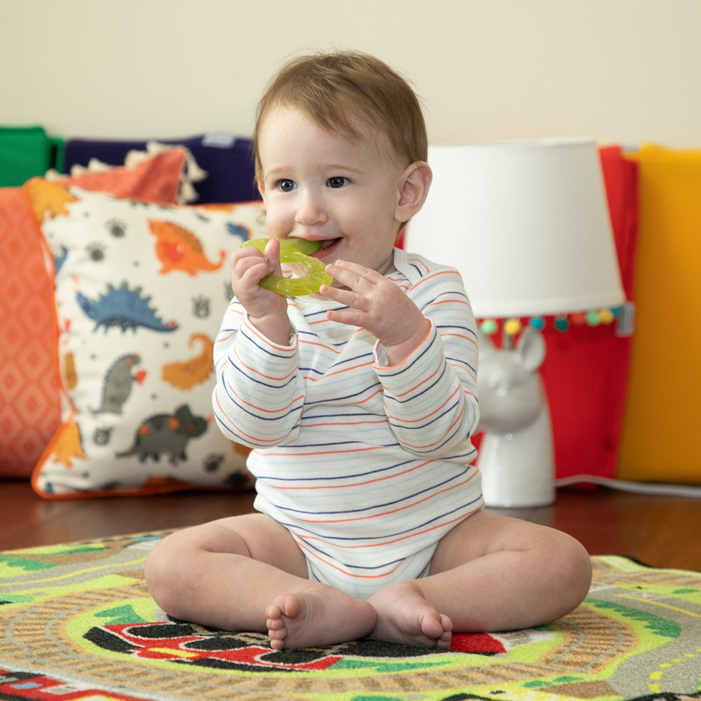 柔らかく短い突起が赤ちゃんを落ち着かせて、歯茎をきれいにするハガタメ!