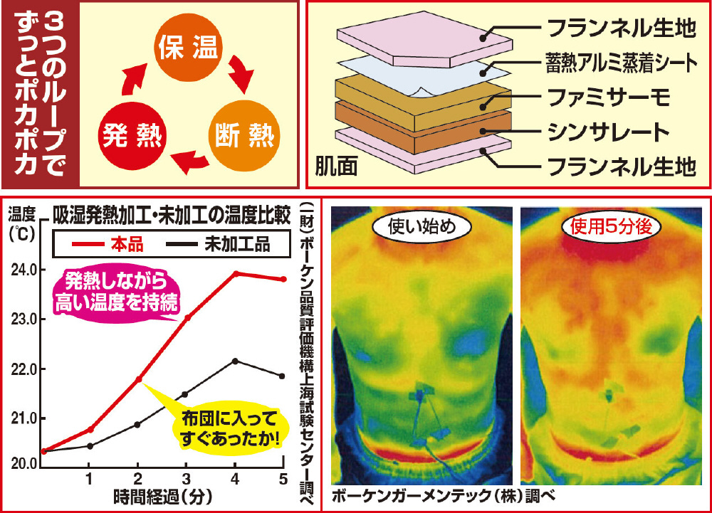 ●発熱・保温、断熱が寝ている間に繰り返され、寒い冬の夜も朝までポカポカ快眠。電気を使わず電気代もかからず経済的です。