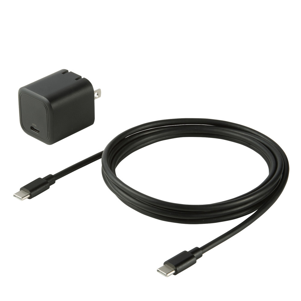 スマートフォンからノートパソコンまで1台で幅広い機器の充電に対応した、USB PD規格45W出力のキューブ型AC充電器。Type-Cケーブル付属。