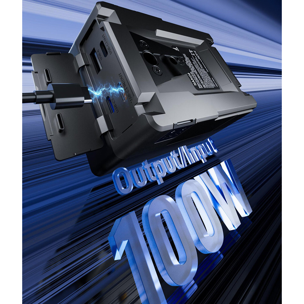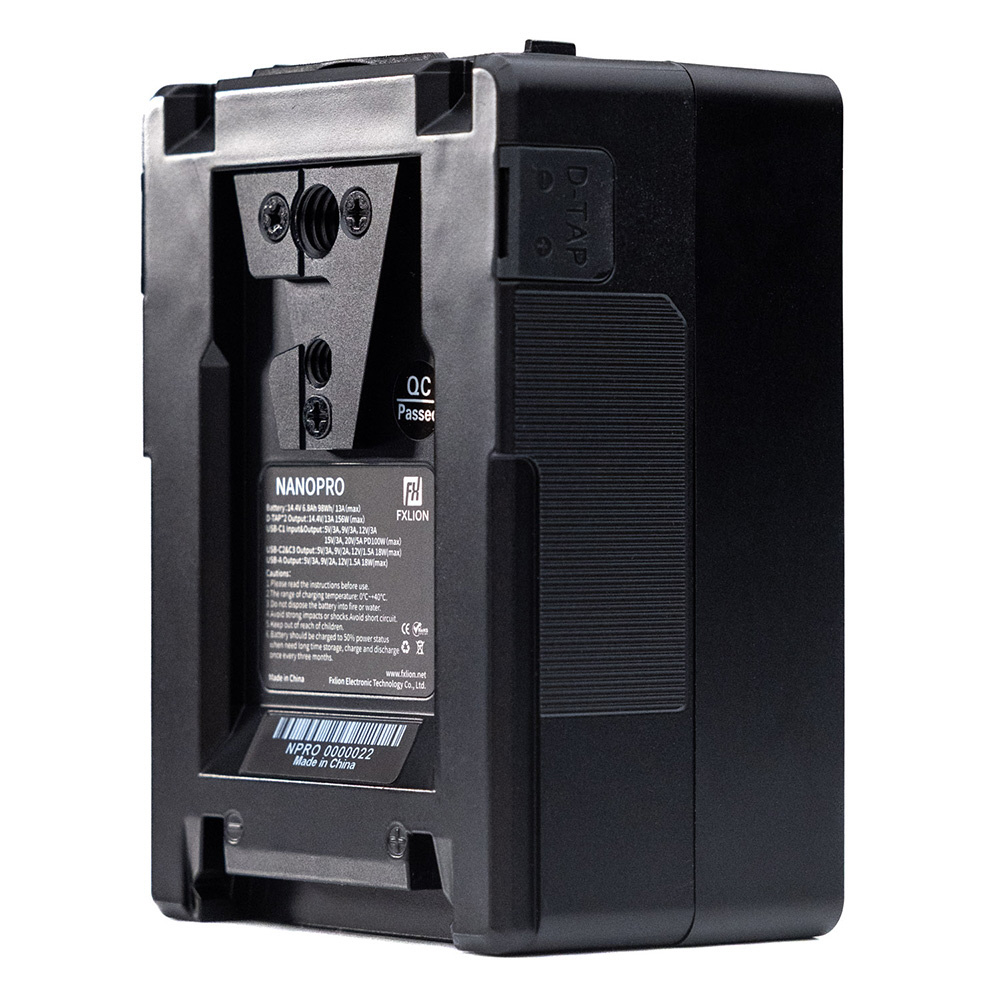 NANO Pro 98は、コンパクトな98WhのVマウントバッテリーです。安全性、汎用性を追求して設計された高出力リチウム電池を搭載し、スマートLCDディスプレイで各種情報を確認できます。USB-C PD100W対応で、デュアルD-Tapを含む複数出力端子、そして頑丈な保護機能を備えていますので、プロ用シネマカメラをはじめLEDライト、ノートPC、さらにはモバイル機器までお使いいただけます。