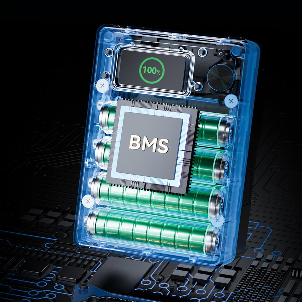 BMS(バッテリー・マネジメント・システム)により、過充電や過放電、過電流、セルの温度管理、残量計算など、さまざまなリスクを抑制します。スマートLCDスクリーンのディスプレイには、バッテリー容量、入出力電圧・電力、充放電時間、サイクル数、内部温度などを表示します。また互換性のあるカメラとの通信をサポートし、バッテリー情報をカメラ側で表示することができます。