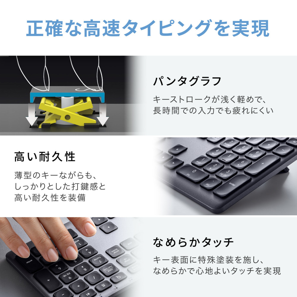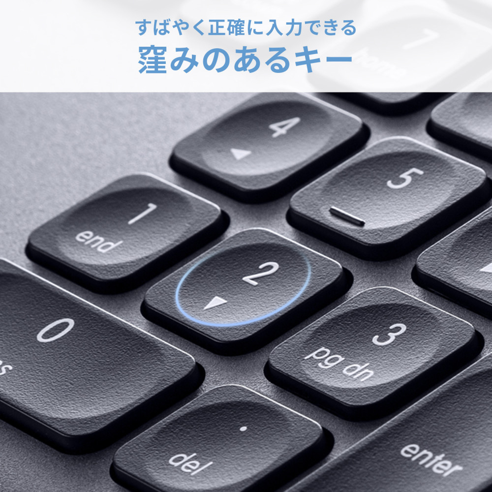 窪んだキーが打ちやすい、Bluetoothと2.4G両方に対応したパンタグラフキーボード。