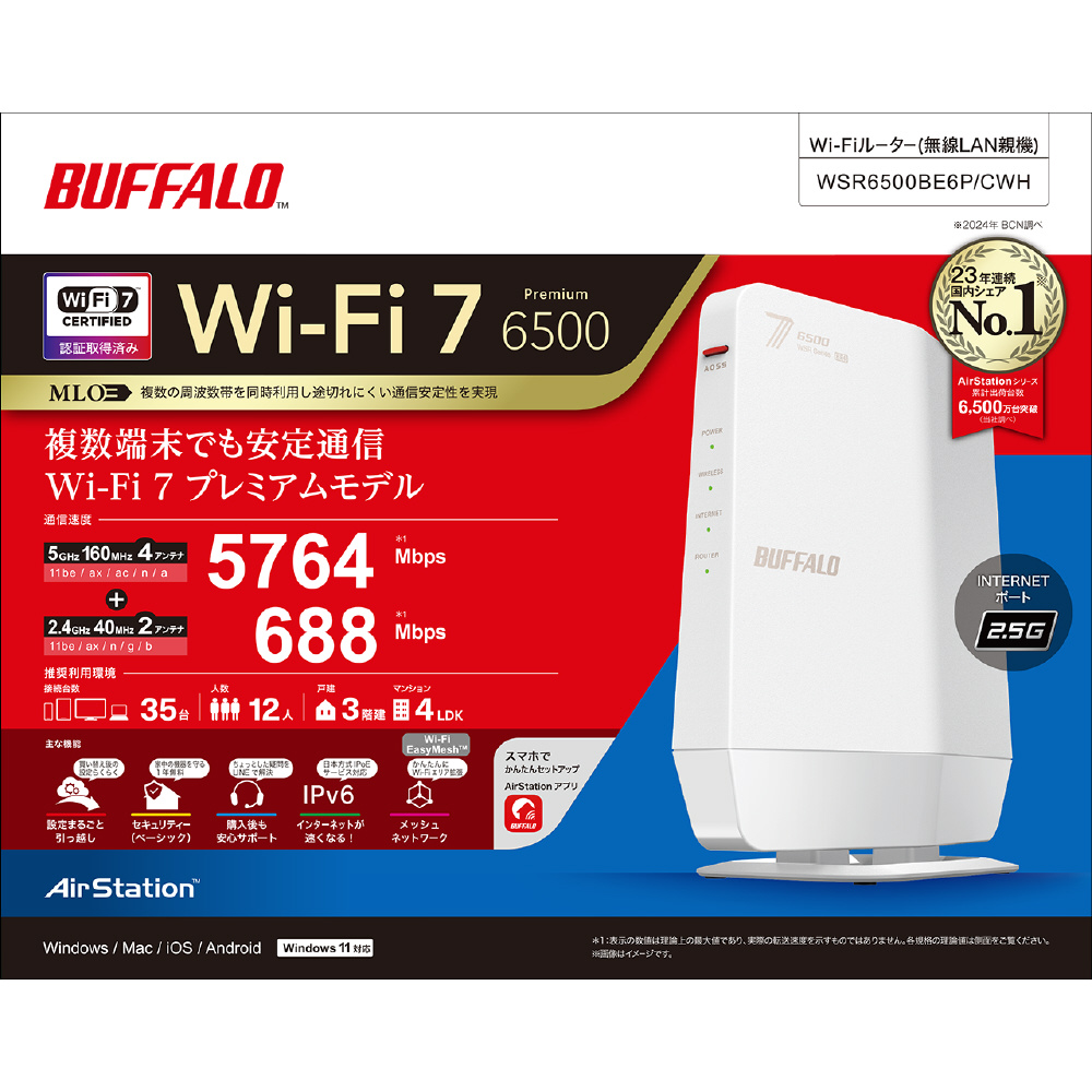 「Wi-Fi 7(11be)対応デュアルバンドWi-Fiルーター 5764+688Mbps AirStation」