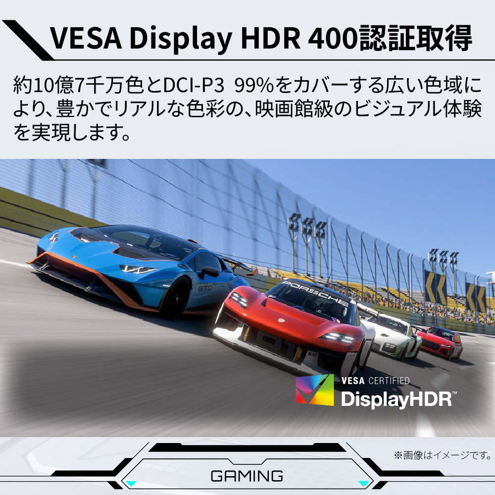 約10億7千万色とDCI-P3 99%をカバーする広い色域により、豊かでリアルな色彩の、映画館級のビジュアル体験を実現します。