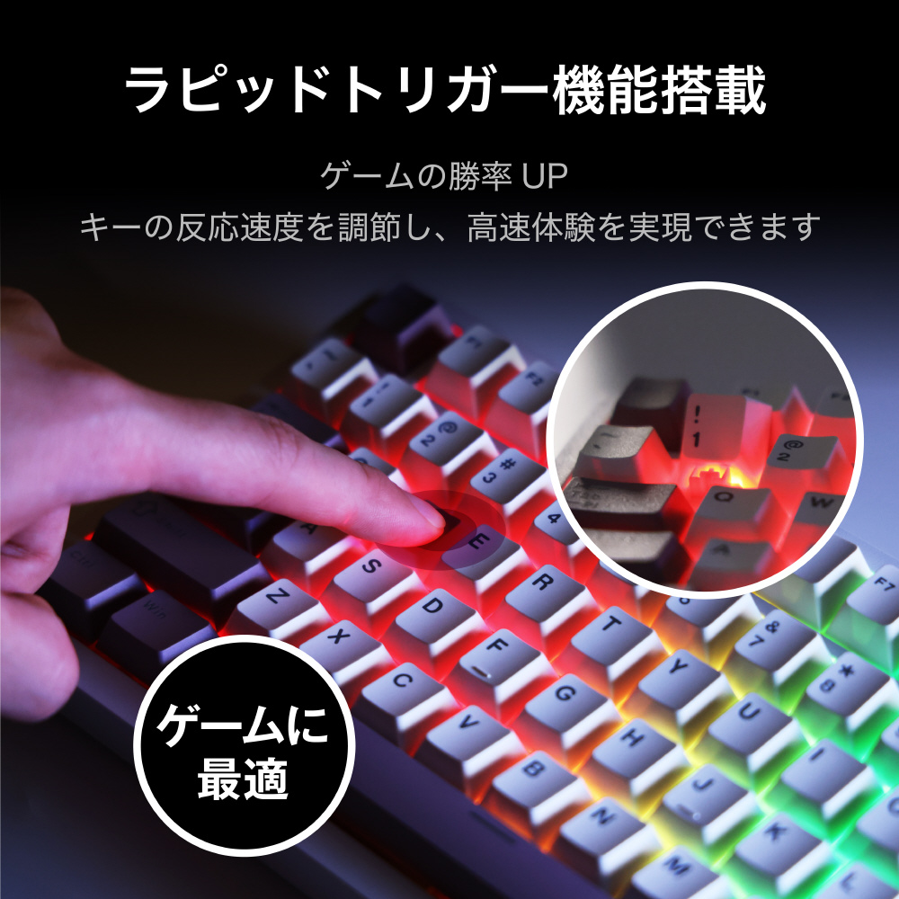 本製品は磁気式スイッチを採用し、キーが反応する押し込み具合を調整できる超高速アクチュエーションを実現。