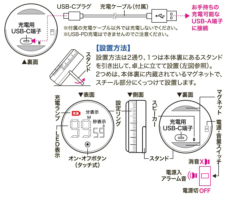 | 商品名 | ダイヤルタイマー充電式 ホワイト T46WH |