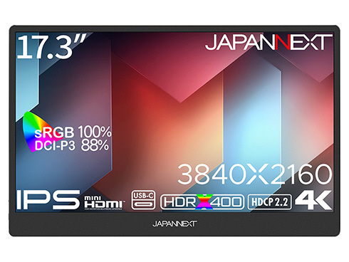「17.3インチ IPSパネル搭載 4K(3840x2160)解像度 モバイルモニター miniHDMI USB-C sRGB:100% DCI-P3:88% HDR400相当 スマートケース付き 【2年保証】」