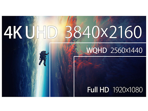 ■4K(3840x2160)解像度に対応。フルHD(1920x1080)解像度の4倍の高解像度は圧倒的な高生産性を実現します。上下左右170度に対応した広視野角IPSパネルは、コンテンツを色鮮やかに映し出します。