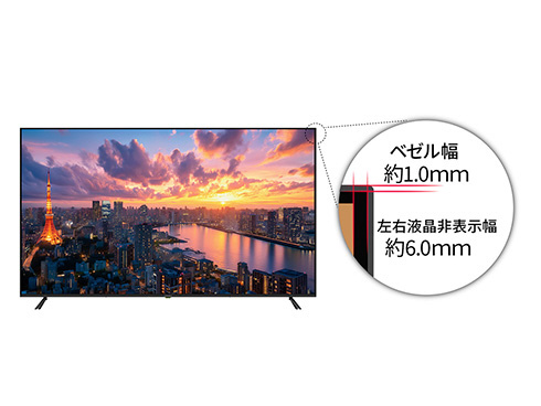 ■最大輝度400cd/m2、sRGB:99%の広色域に対応した液晶パネルはHDR400相当の性能を持ち、コンテンツを色鮮やかに映し出します。HDR(ハイダイナミックレンジ)は、明るい部分も暗い部分もくっきり表現しリアルに迫った深みのある映像を演出します。HDR対応のブルーレイディスクやビデオ・オン・デマンド、ゲームなどの表示が可能です。