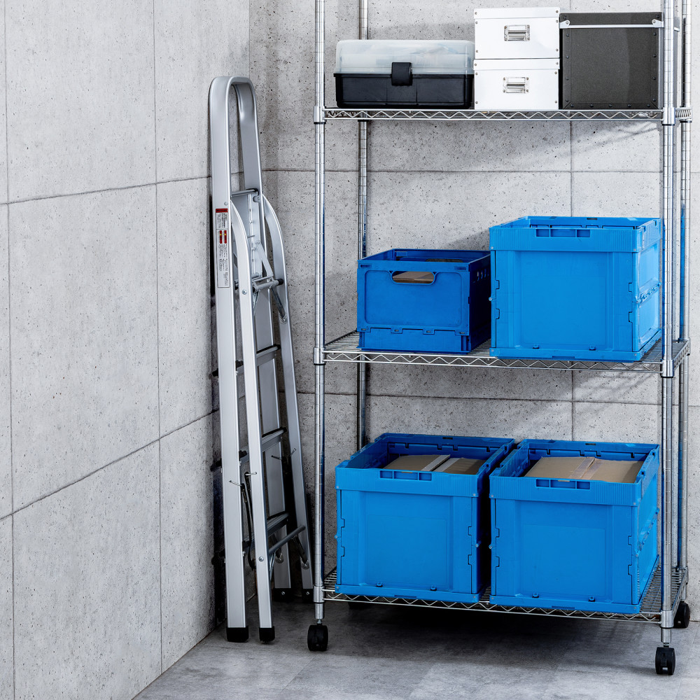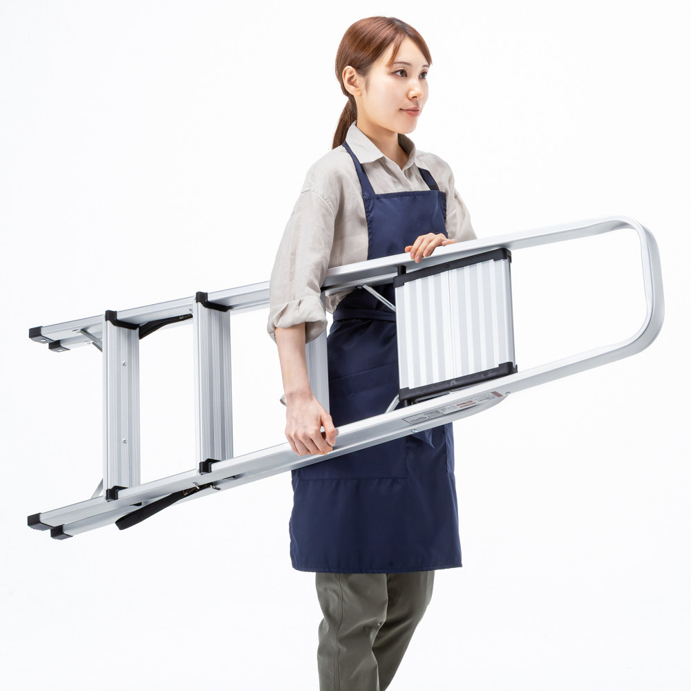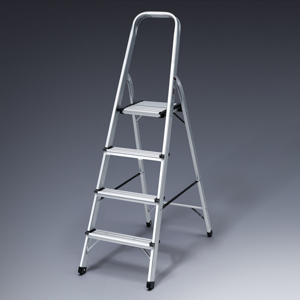軽くて錆びにくいアルミ製の、折りたためる業務用脚立です、4段タイプ。