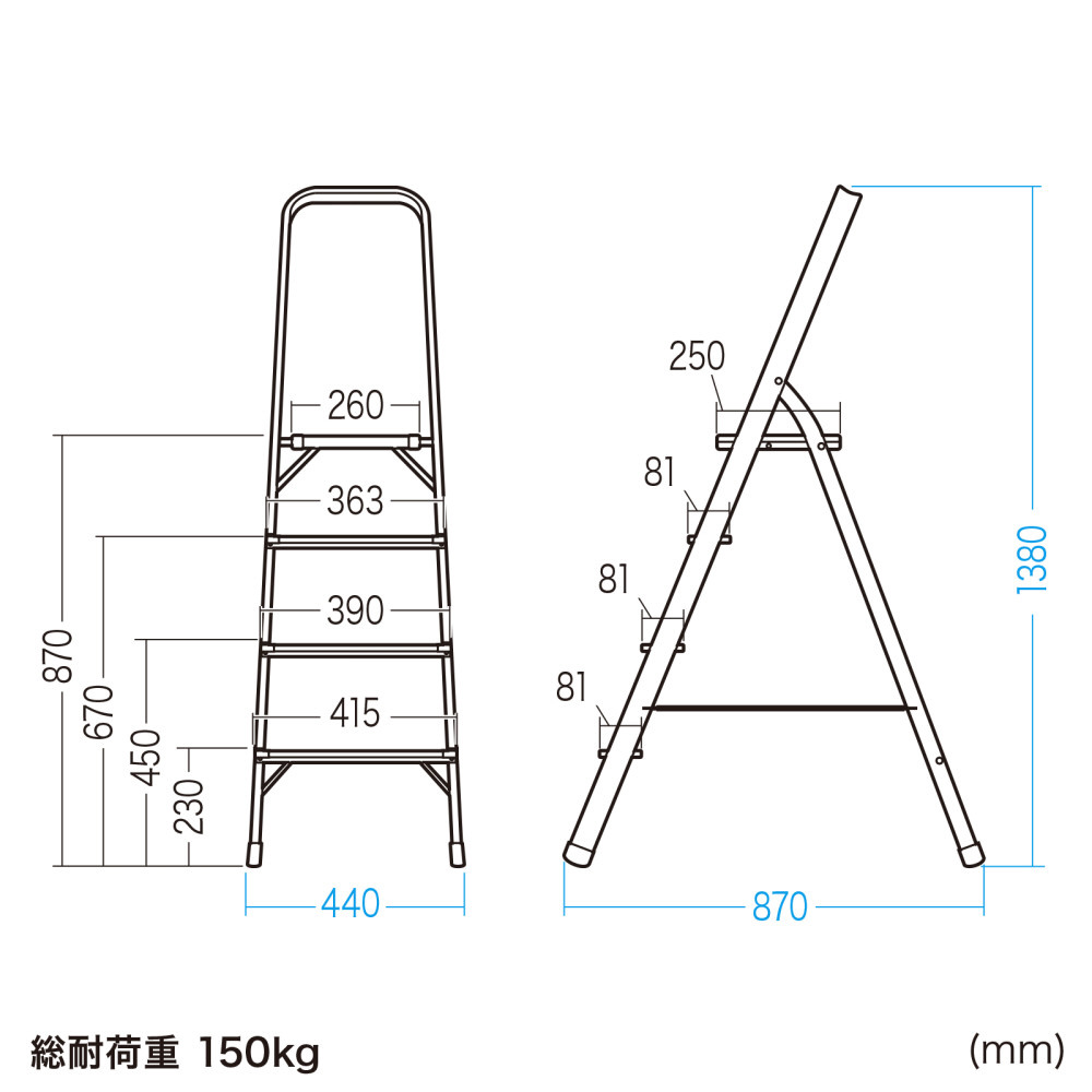 アルミ脚立 4段 アルミ製 折りたたみ式 軽量 耐荷重150kg 取っ手付き 高所作業用 省スペース収納 STL-6
