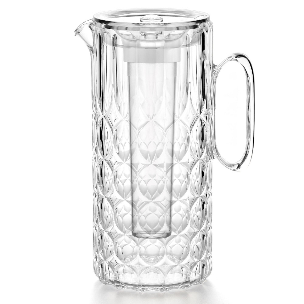 持ち運びが軽く、割れにくいのも嬉しい蓋付きピッチャー。アイスホルダーが付いていて、冷凍して凍らせたホルダーをセットすれば冷たいドリンクを楽しむことが出来ます。フォーマルなランチや自宅や屋外でのカジュアルなパーティーにも最適です。軽量なため取り扱いやすく、キッチンからテーブルへの移動も簡単。カフェやレストランにもお勧めです。キラキラと光をキャッチするデザインとオシャレなカラーでテーブルを彩ります。
